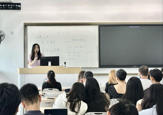 在经验分享环节结束后,留办刘梦璐老师为留学生国际学生解读了两项与学业紧密相关的重要内容。一方面,刘老师详细介绍并讲解了留基委《关于开展来华留学本科入学学业水平测试的通知》,提醒相关留学生国际学生提前做好准备,认真备考,确保顺利通过测试;此外,刘梦璐老师还特别通报了奖学金变动的相关政策,重点强调国贸专业留学生国际学生需关注这一调整:若出现挂科情况,奖学金等级将相应降低。这一政策的调整旨在进一步激励国贸专业留学生国际学生重视学业,认真对待每一门课程,以更积极的态度投入学习,通过努力提升学业成绩,争取更高等级的奖学金,为个人学业发展奠定坚实基础。最后,刘老师表示,留学生工作办公室团队一直在全心全意为留学生国际学生的学习与生活保驾护航,始终以高度的责任心和使命感,为留学生国际学生解决实际问题,让留学生国际学生在异国他乡感受到学校的温暖与关怀,希望同学们珍惜在中国的留学时光,通过自身的持续努力,在未来可以实现学业与生活的“双丰收”。After the experience-sharing session, Ms. Liu from the International Student Office interpreted two important pieces of content closely related to international students’ academic studies for them.On one hand, Ms. Liu gave a detailed introduction and explanation of the Notice on CSCA. She reminded the relevant international students to make preparations in advance, study earnestly for the test, and ensure they pass it smoothly. In addition, Ms. Liu also specifically notified them of the relevant policies regarding scholarship adjustments, with emphasis on the need for international students majoring in International Economics and Trade to pay attention to this change: if a student fails a course, their scholarship level will be reduced accordingly. This policy adjustment aims to further encourage international students majoring in International Economics and Trade to attach greater importance to their studies, take each course seriously, devote themselves to learning with a more positive attitude, improve their academic performance through hard work, and strive for a higher-level scholarship, thereby laying a solid foundation for their personal academic development. Finally, Ms. Liu stated that the team of the International Student Office has always been fully committed to supporting international students in their studies and daily lives. With a strong sense of responsibility and mission, the office consistently helps international students solve practical problems, allowing them to feel the university’s warmth and care while studying in a foreign country. She also encouraged the students to cherish their study experience in China and, through their continuous efforts, achieve double success in both their academic studies and personal lives in the future.此次本科学习分享会及本科考试说明会的成功举办,不仅为国际学生清晰了考试要求、提供了实用的学习方法,更让国际学生感受到学校对其学业发展的高度重视与关怀。未来,上海海洋大学留学生工作办公室将继续围绕留学生国际学生的核心需求,开展更多针对性强、实用性高的活动,为国际学生在华的学习与成长提供有力支持,助力国际学生实现学业目标,成为具有国际视野的高水平优秀人才。The successful holding of this Undergraduate Academic Sharing Session and Undergraduate Exam Briefing Session not only clarified exam requirements and provided practical study methods for international students, but also made them feel the university’s great attention to and care for their academic development.In the future, the International Student Office of SHOU will continue to focus on the core needs of international students, organize more activities with strong targeting and high practicality, provide solid support for international students’ study and growth in China, help them achieve their academic goals, and enable them to become high-level outstanding talents with an international perspective.
