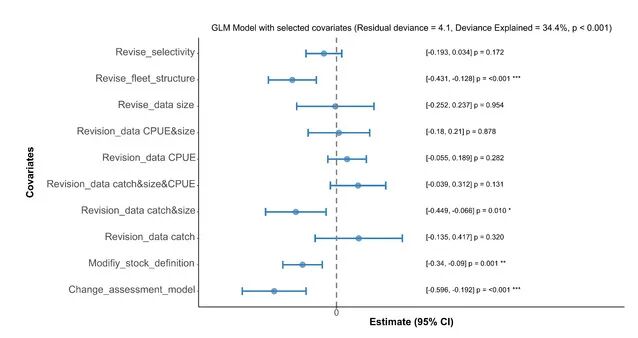 The study found that the choice of key uncertainty factors varies significantly among different management organizations, while within the same organization, the settings are relatively consistent across different tuna stocks. This suggests that assessment habits and management systems often have a greater influence on decision-making than biological characteristics (Figure 2). Meanwhile, over the past 20 years, the frequency of data-related uncertainty settings has gradually decreased, while uncertainty factors related to biological processes have received increasing attention. Factors such as improvements in assessment methods, changes in fishing fleet structure, and updates to stock definitions are the main reasons for changes in uncertainty settings in consecutive assessments across organizations (Figure 3).