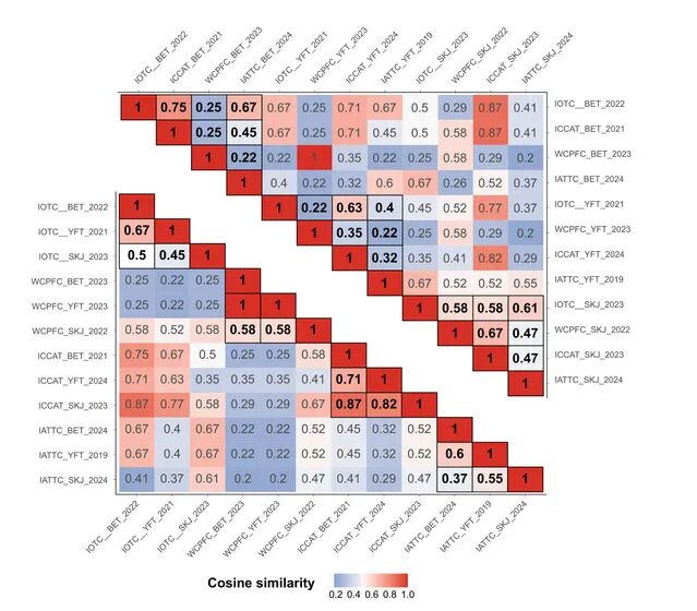 图2. 不同金枪鱼种群评估中不确定性设置的相似性